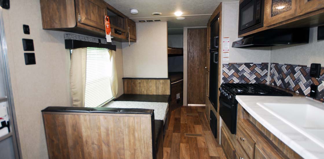 Puma 22RBC 25' travel trailer with tandem axle; 4 stabelizer jacks, queen bed, sleeper sofa, dinette-bed, bunk beds, kitchen with microwave, oven, sink, cook top, refrigerator-freezer, full bathroom with shower. With a dry weight of 4,243 lbs. this unit can be towed by a 1/2 ton pickup truck.